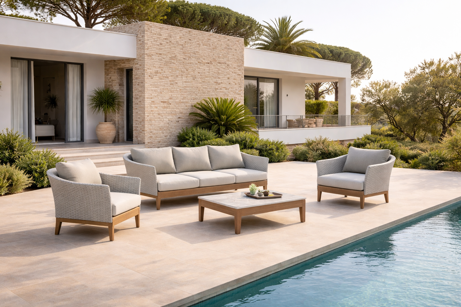 Il Salotto Santos è la scelta ideale per chi desidera un arredo outdoor versatile, raffinato e altamente funzionale, capace di trasformarsi e adattarsi a ogni momento di relax, senza rinunciare allo stile.