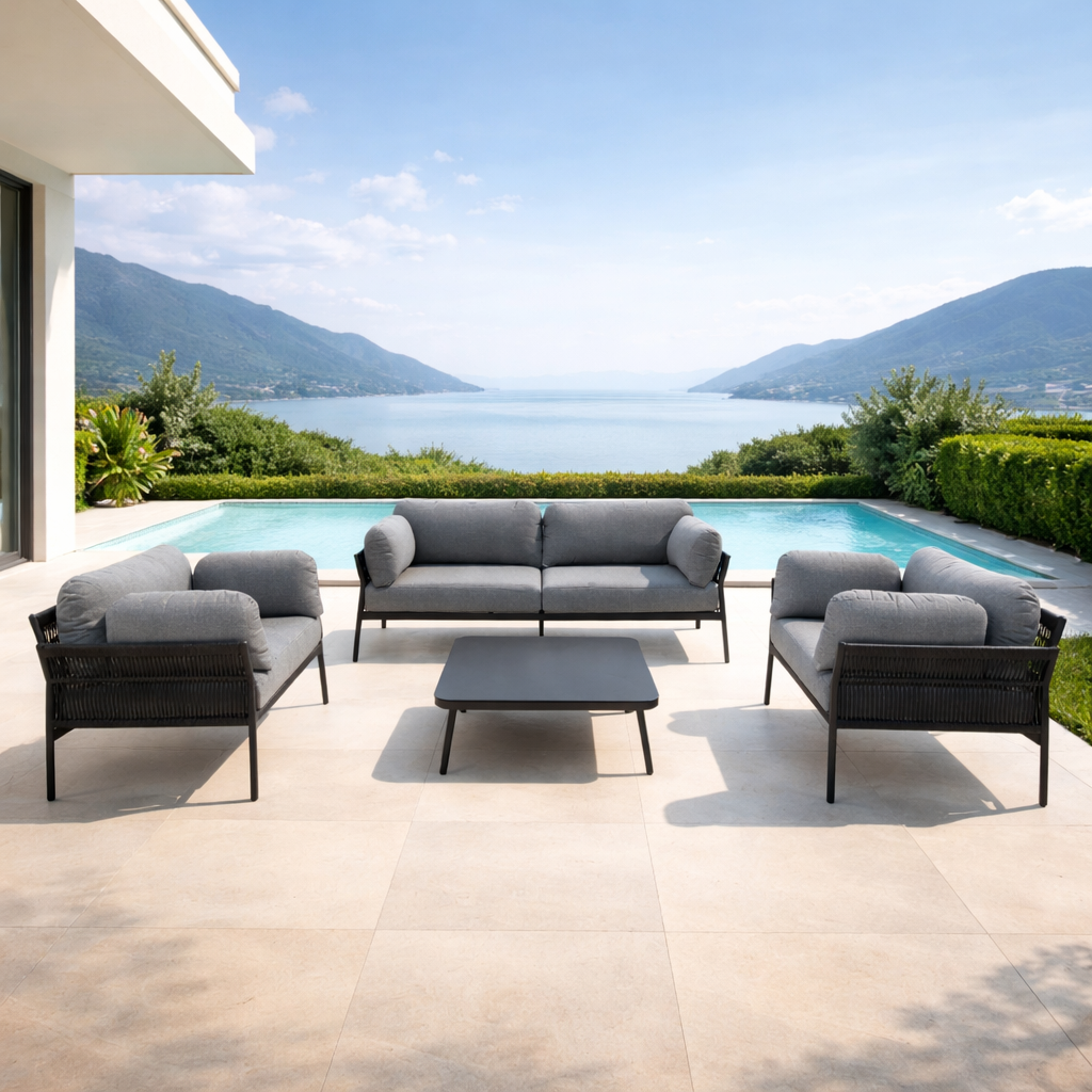 Il Salotto BELÉM 3 colore antracite è la sintesi perfetta di design moderno, comfort e resistenza nel tempo, pensato per chi desidera un arredo outdoor di classe e affidabile.