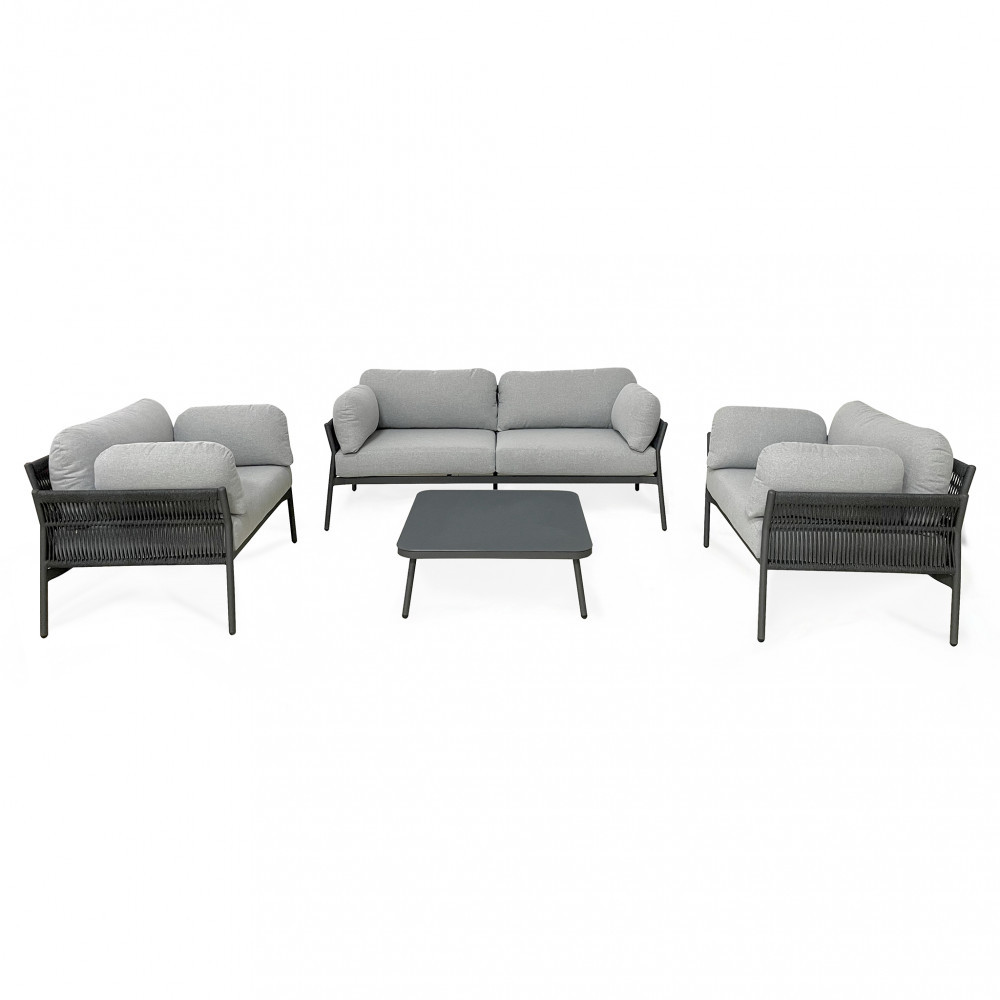 Divano 3 posti, 2 poltrone e tavolino – Colore antracite