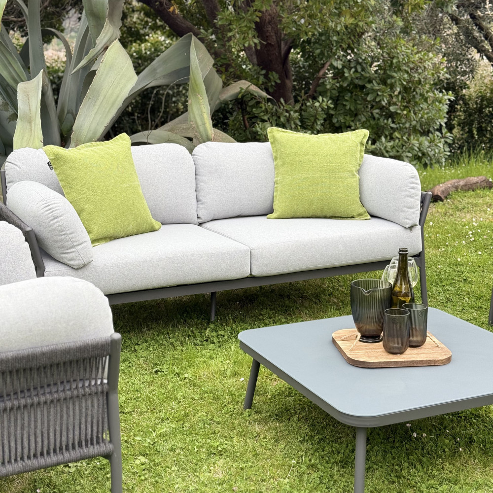 Il Salotto da giardino SALOTTO BELÉM 3 in colore antracite rappresenta una scelta elegante e contemporanea per arredare con stile gli spazi esterni e interni. Le linee moderne e pulite, abbinate a materiali di alta qualità, permettono di creare una zona relax raffinata e confortevole, ideale per giardini, terrazze, verande o ambienti indoor.