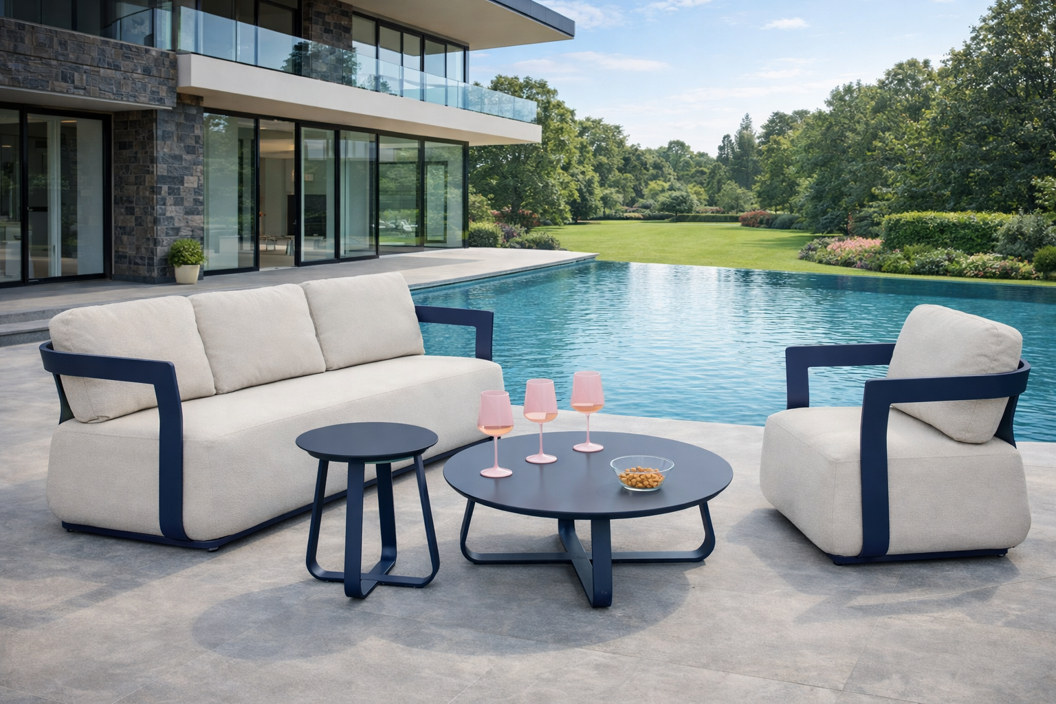 Scegli il Set Monaco in alluminio blu per portare nei tuoi spazi esterni un mix perfetto di comfort, funzionalità e design distintivo. Un salotto completo e resistente, pensato per vivere l’outdoor con stile in ogni stagione.
