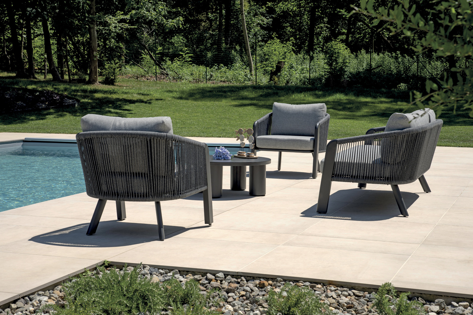 Il salotto Santa Cruz è perfetto per creare una zona conversazione elegante e funzionale, adatta sia a contesti residenziali che a spazi professionali come hotel, B&B o lounge esterne. Le sue linee contemporanee lo rendono facilmente abbinabile ad altri arredi outdoor, valorizzando qualsiasi ambiente.