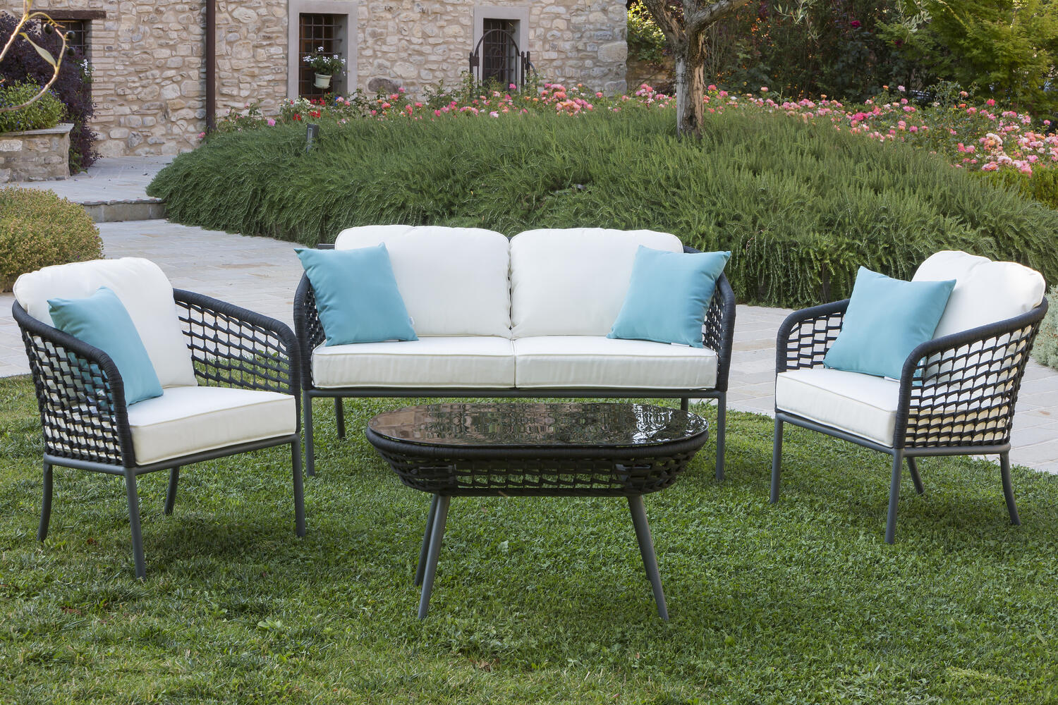 Salotto da Giardino in Alluminio Antracite ARTEMIDE con Corda Grigia