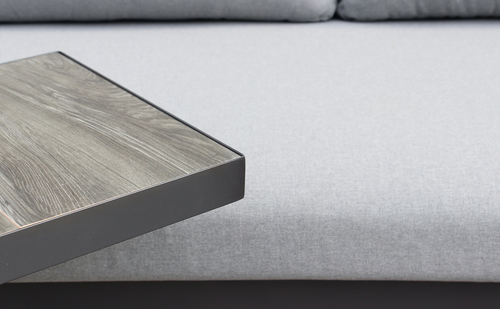 E poi ci sono i morbidi cuscini in tessuto grigio melange, che aggiungono comfort e accoglienza. Idrorepellenti e sfoderabili, sono perfetti per accompagnare ogni momento di relax, sia all’interno che all’esterno. Un invito irresistibile a sedersi, rilassarsi e godersi la compagnia senza pensieri.