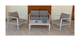 Comode poltrone e un elegante tavolo invitano a trascorre piacevoli ore insieme. Il set in alluminio e textilene piace non solo per l?eleganza ma anche per la sua lunga durata.