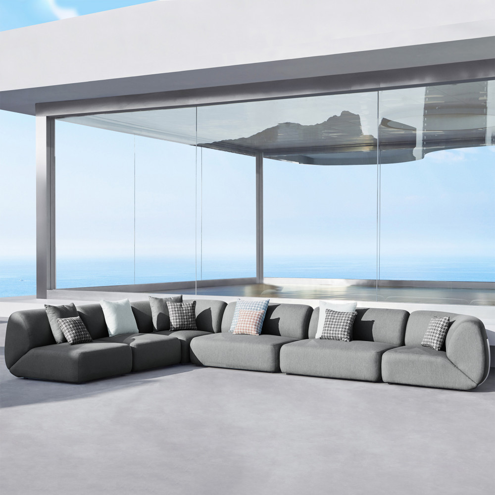 Un divano da esterno modulare che unisce comfort, versatilità e resistenza, perfetto per creare aree relax di grande impatto estetico.