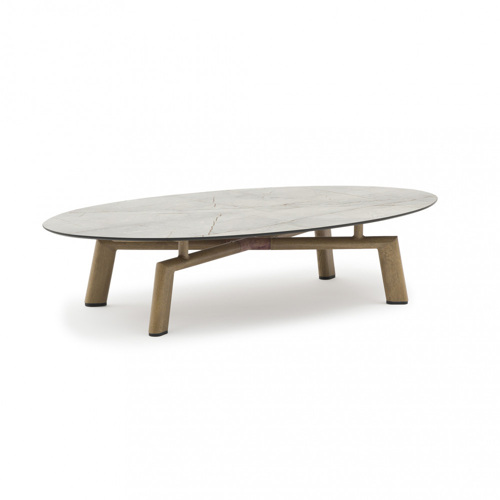 TAVOLINO da giardino MEDELLÍN struttura in alluminio effetto legno piano in hpl Dimensioni: cm 137 l x 71 p x 31 h