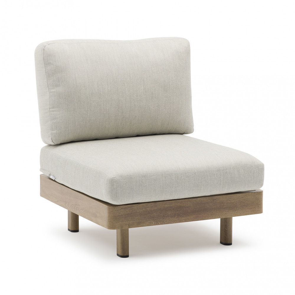 La Poltrona da giardino MEDELLÍN centrale è un modulo singolo del sistema componibile Medellín, progettato per offrire massima flessibilità compositiva e un comfort elevato negli spazi outdoor. Può essere utilizzata sia come seduta indipendente sia come elemento centrale per ampliare divani e configurazioni lounge.