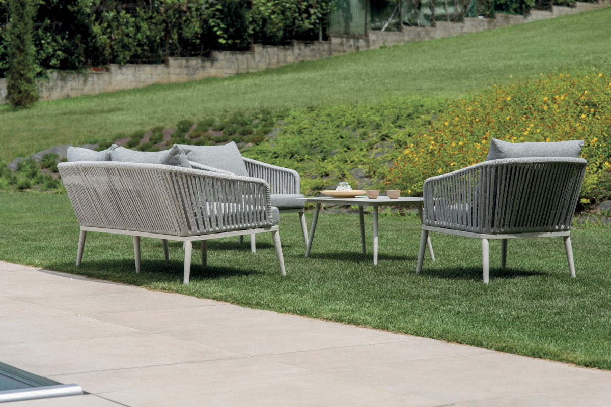 Salotto da giardino in alluminio bianco SET ALICANTE corda grigia SET 141