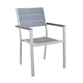 Questa coppia di sedie da giardino con braccioli arreda la tua zona pranzo all'aria aperta con uno stile nuovo e funzionale. La sedie è caratterizzata dalla finitura dei braccioli, della seduta e dello schienale a doghe in polywood color grigio.
