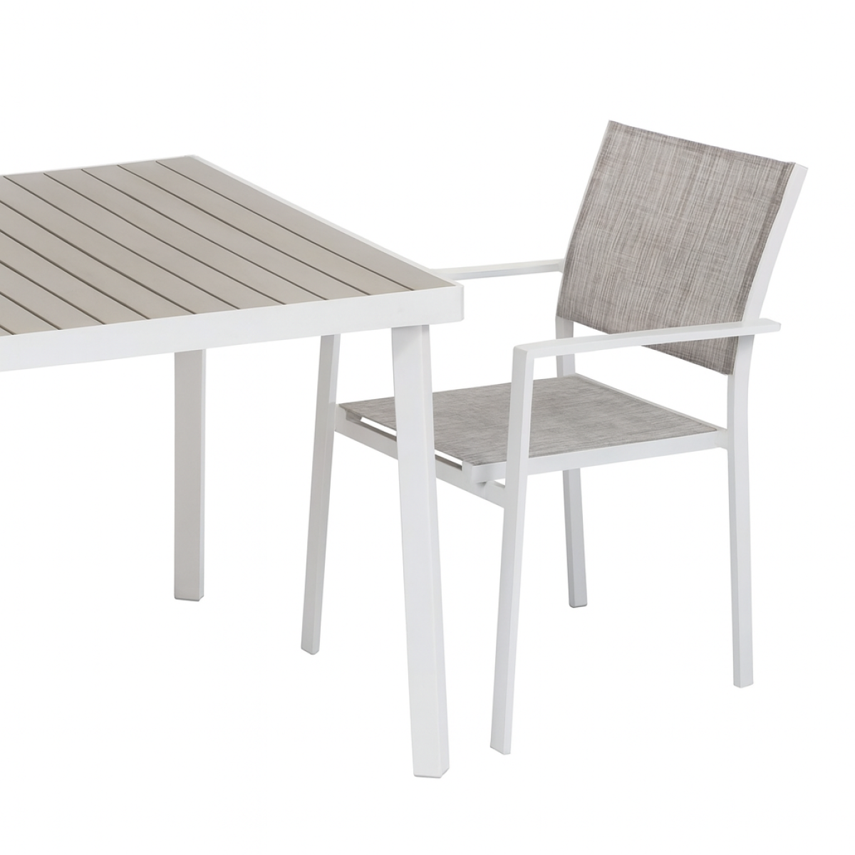 Sedia impilabile da giardino JAMAICA BRACCIOLI in textilene grigio e alluminio bianco
