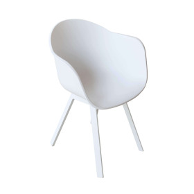Modello caratterizzato da una struttura in polipropilene con gambe in alluminio. Schienale leggermente curvo che garantisce un ottimo appoggio. Oltre a non subire alterazioni dagli agenti atmosferici, non necessita di manutenzione.