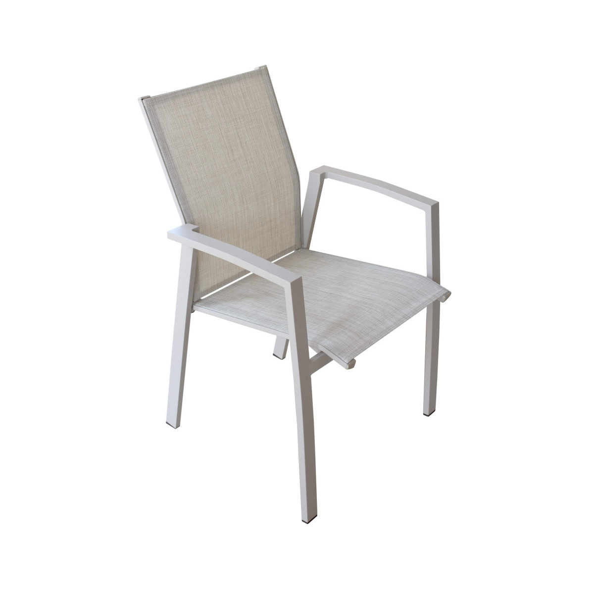 Pronto alla bella stagione? sedie con braccioli da esterno con struttura in alluminio, seduta e schienale in textilene.