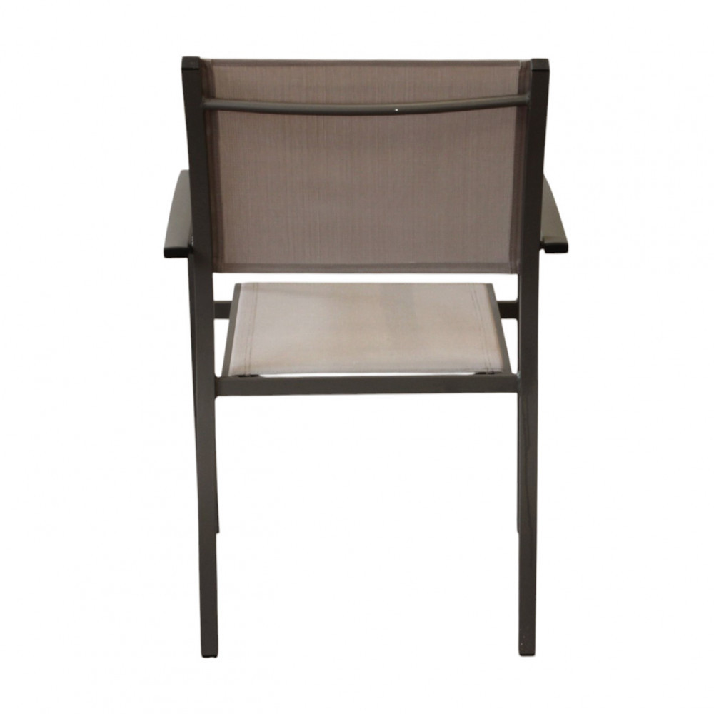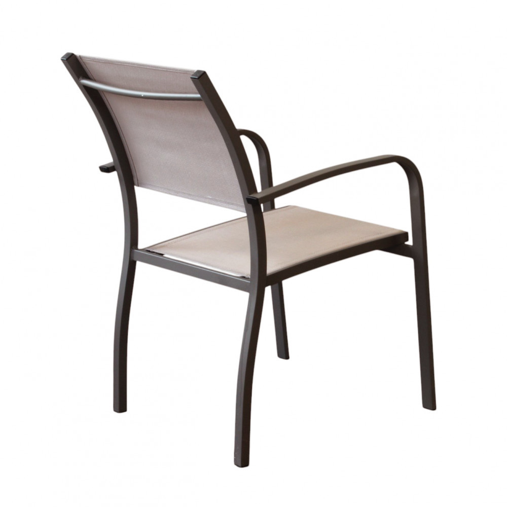 La finitura taupe dona alla poltroncina un aspetto pulito e contemporaneo, facilmente abbinabile a diverse soluzioni d’arredo outdoor.