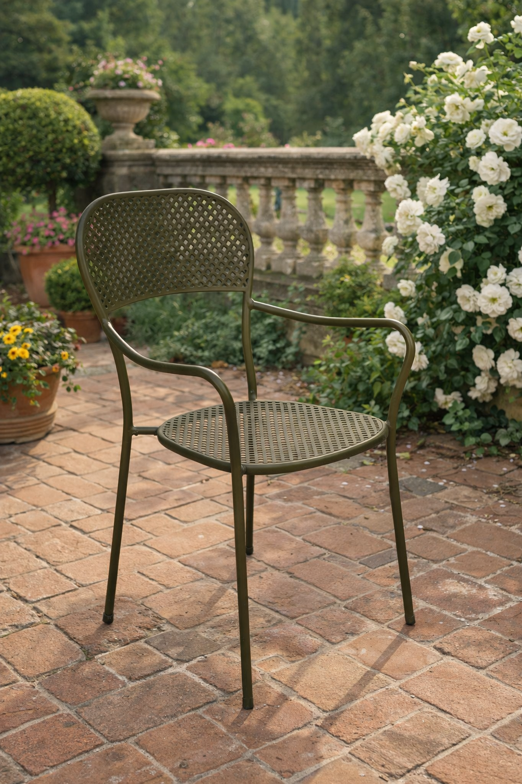 Perfetta per zone pranzo outdoor, aree relax o spazi conviviali, la sedia Intra Moia si abbina armoniosamente a tavoli in ferro o metallo, in particolare a modelli con finitura antracite. Può essere personalizzata con cuscini o accessori tessili per aumentare il comfort e caratterizzare l’ambiente.