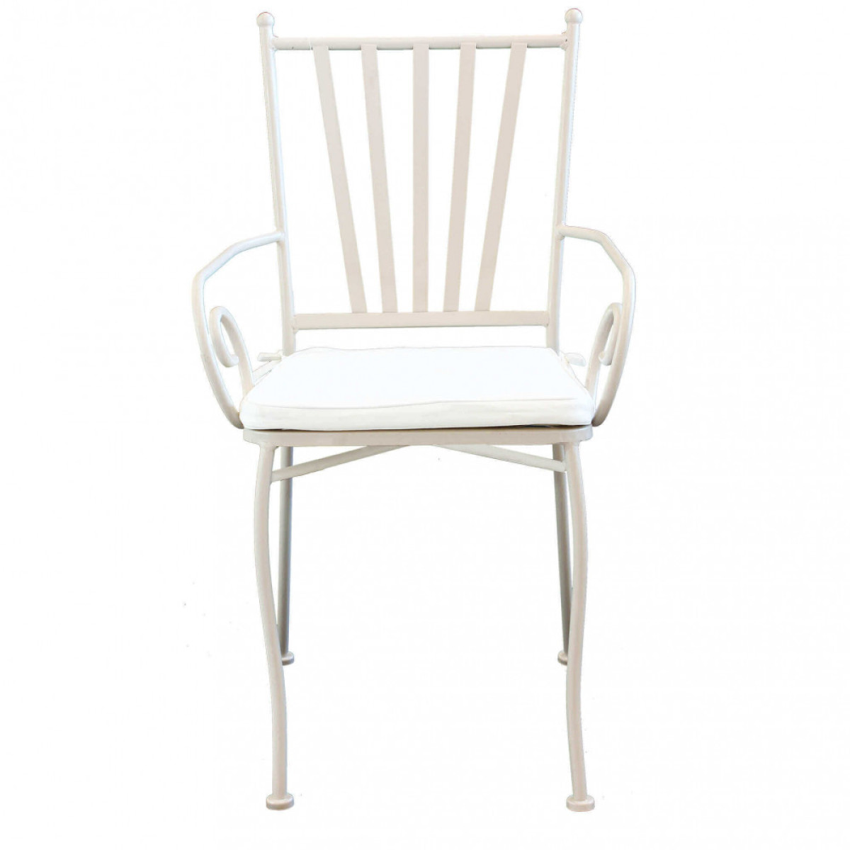 Poltrona in ferro verniciato a polvere TORTORA cuscino ecru Dimensioni: cm 41 x 53 x 90 h