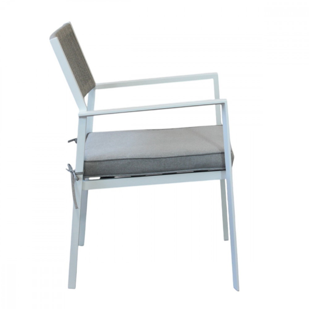 Poltrona da giardino MARACAY bianco con braccioli impilabile, struttura in alluminio, con cuscino incluso, ideale per tutti gli spazi esterni