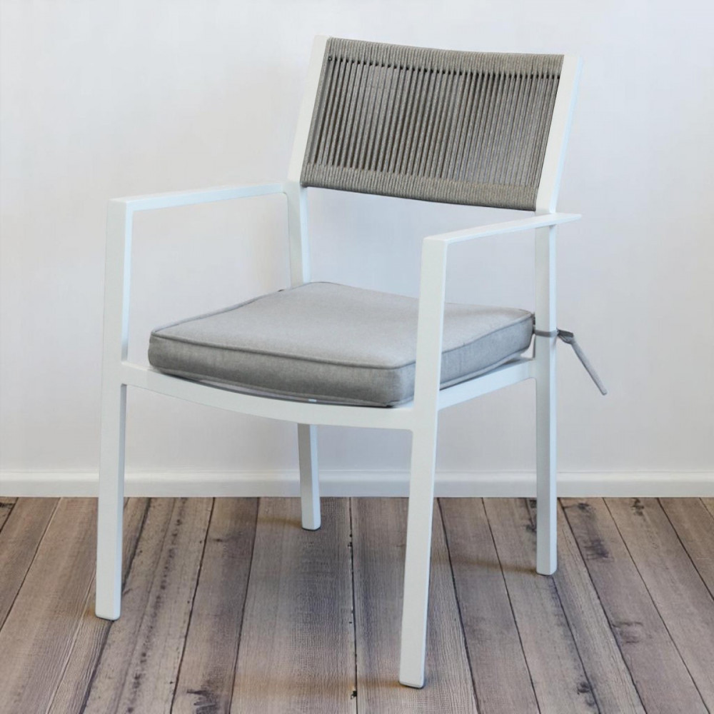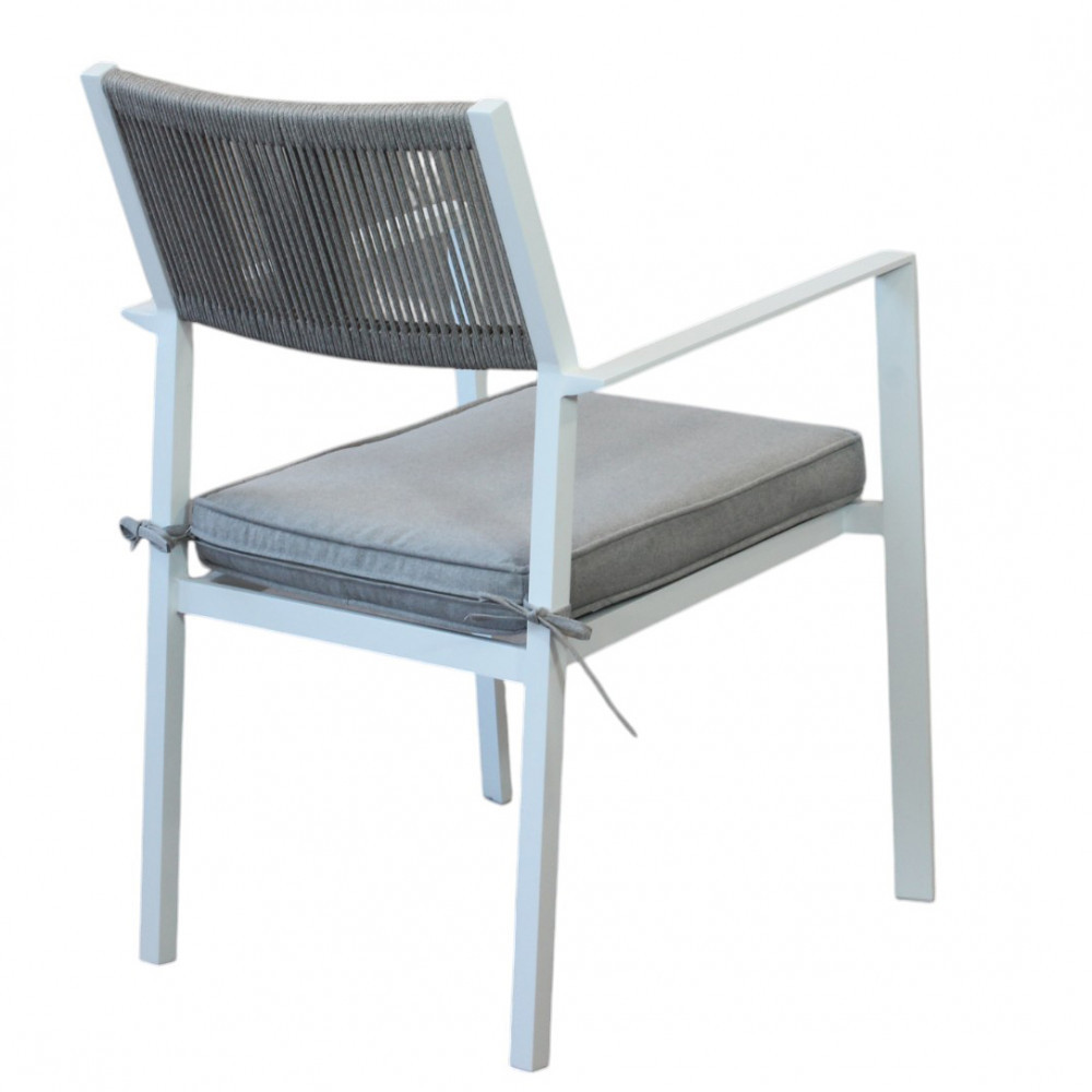 La sedia da esterno in alluminio bianco con Corda rappresenta una scelta equilibrata tra design moderno, comfort e resistenza, ideale per creare spazi esterni eleganti, accoglienti e funzionali.
