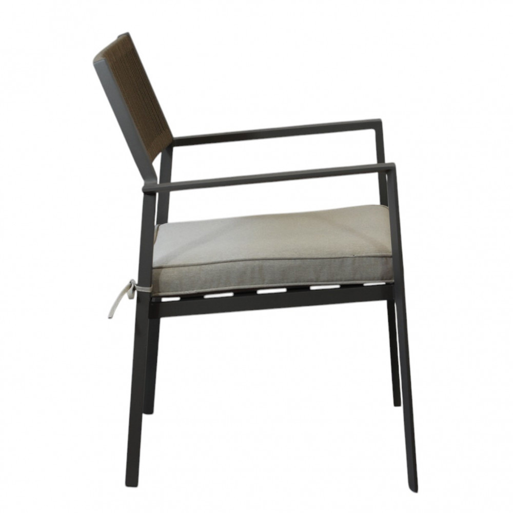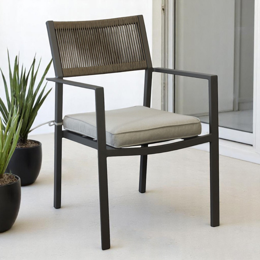 La sedia da esterno in alluminio taupe con Corda rappresenta una scelta equilibrata tra design moderno, comfort e resistenza, ideale per creare spazi esterni eleganti, accoglienti e funzionali.
