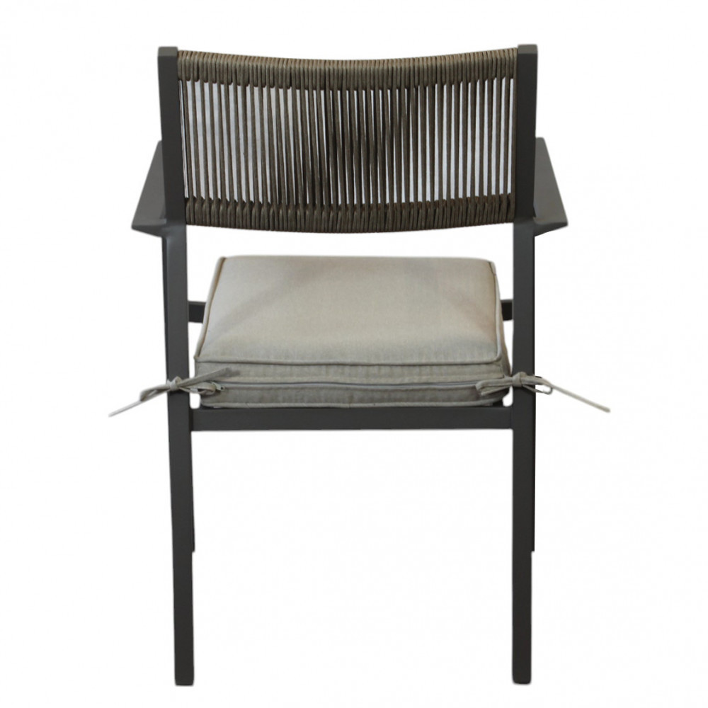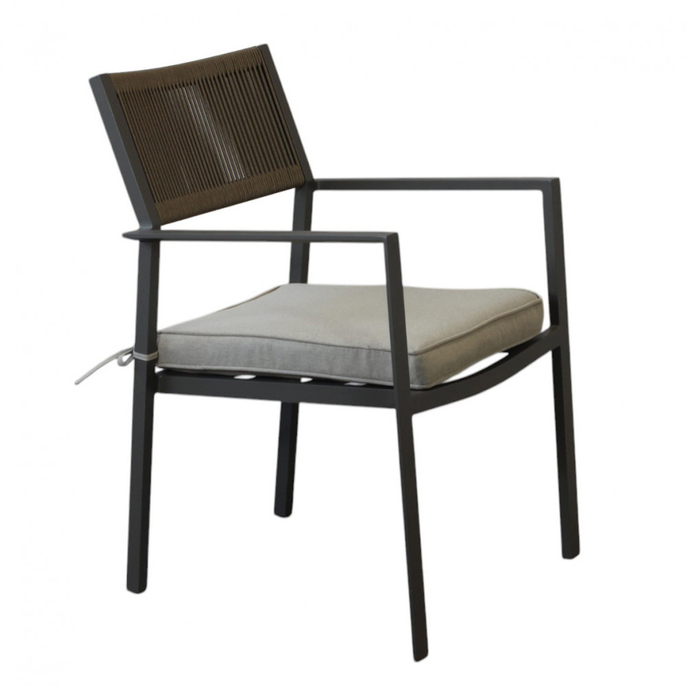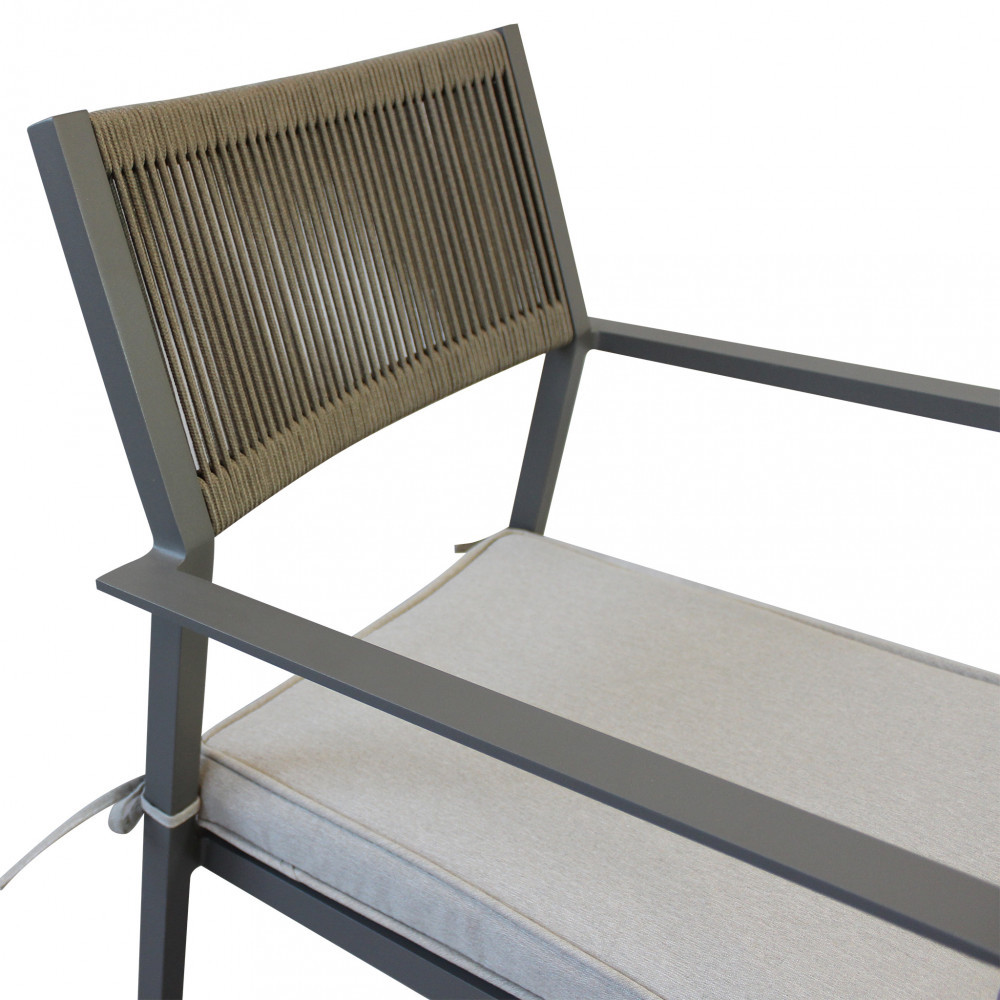 Poltrona da giardino MARACAY taupe con braccioli impilabile, struttura in alluminio, con cuscino incluso, ideale per tutti gli spazi esterni