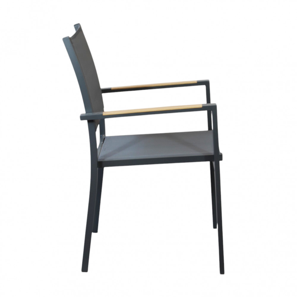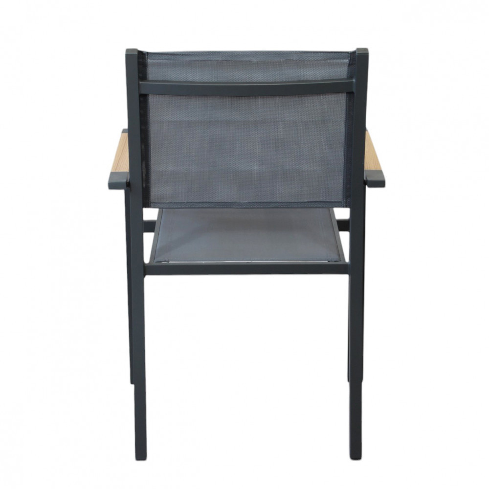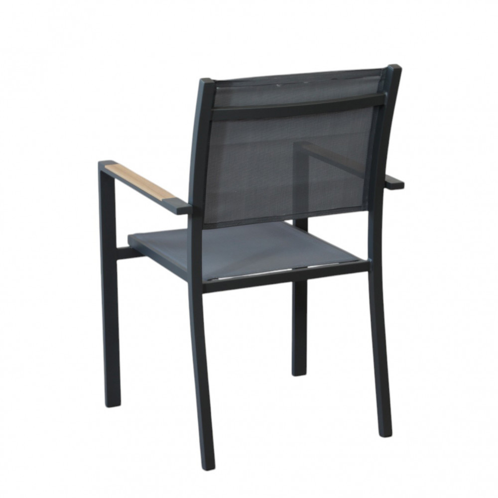 Dotata di braccioli integrati, la poltroncina garantisce una seduta accogliente ed ergonomica, perfetta per momenti di relax o convivialità all’aperto.