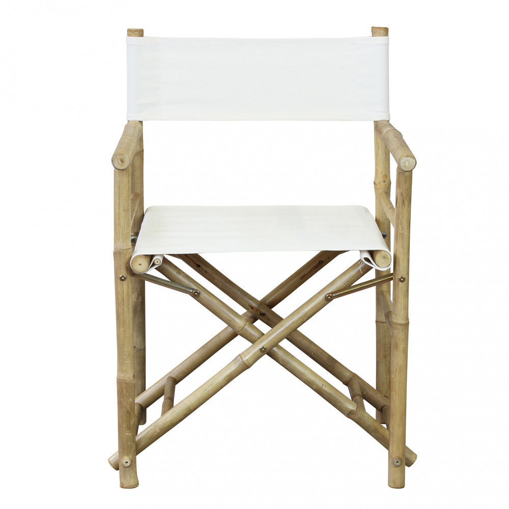 Poltrona da regista MOJITO bianca, con struttura pieghevole in bamboo e tessuto, ideale per dare un tocco d'arredo raffinato al giardino