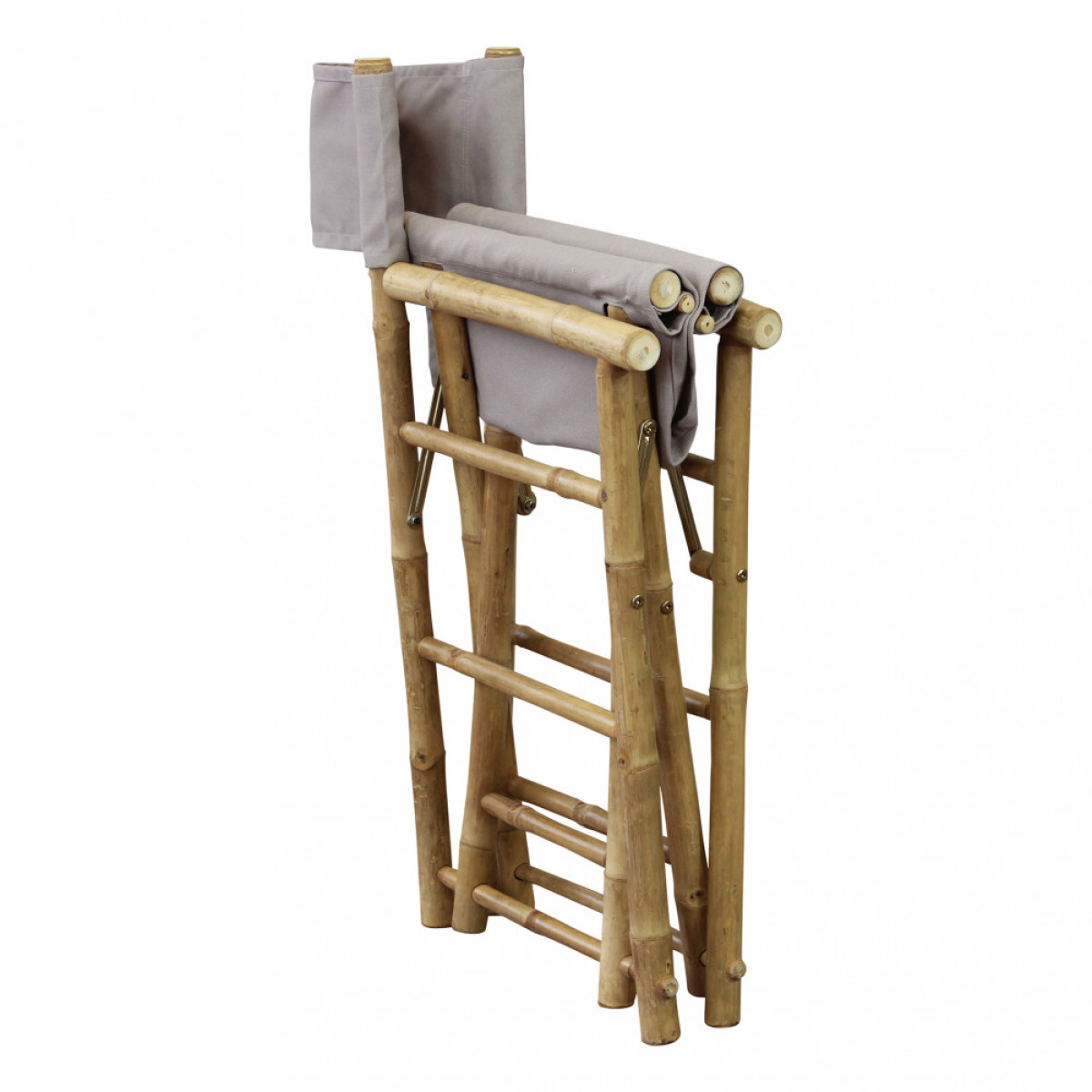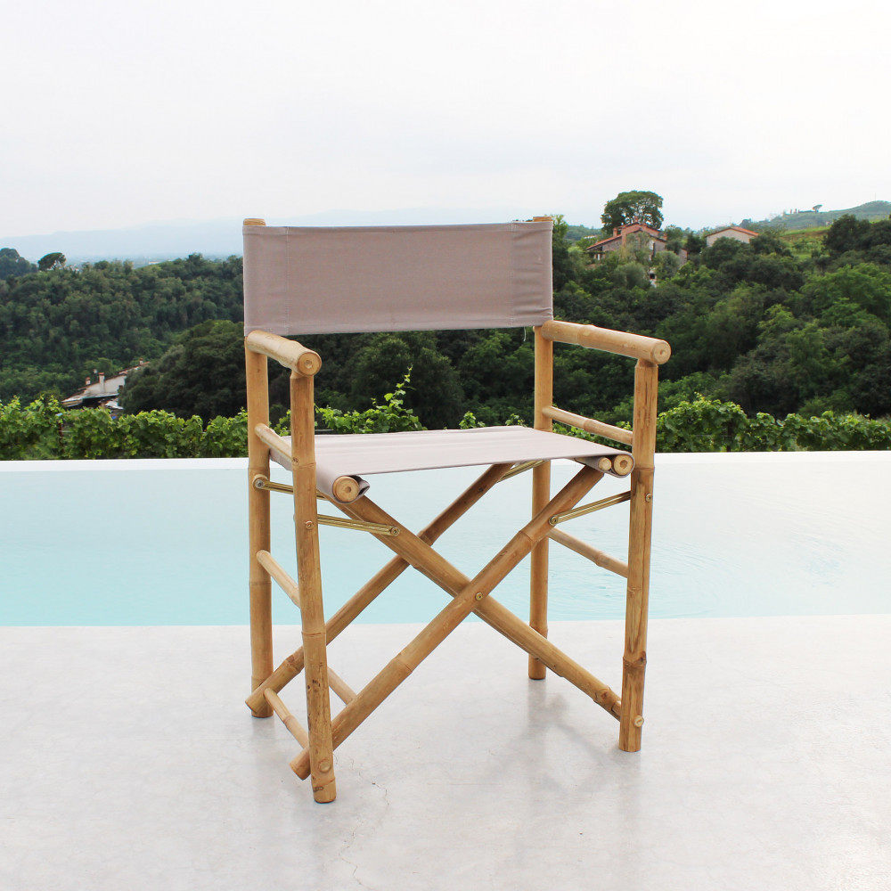 Poltrona da regista MOJITO tortora, con struttura pieghevole in bamboo e tessuto, ideale per dare un tocco d'arredo raffinato al giardino