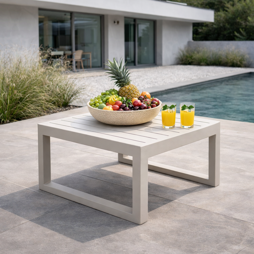 Il tavolino quadrato da esterno in alluminio rappresenta una soluzione pratica ed elegante, perfetta per arricchire qualsiasi spazio all’aperto con funzionalità e stile.