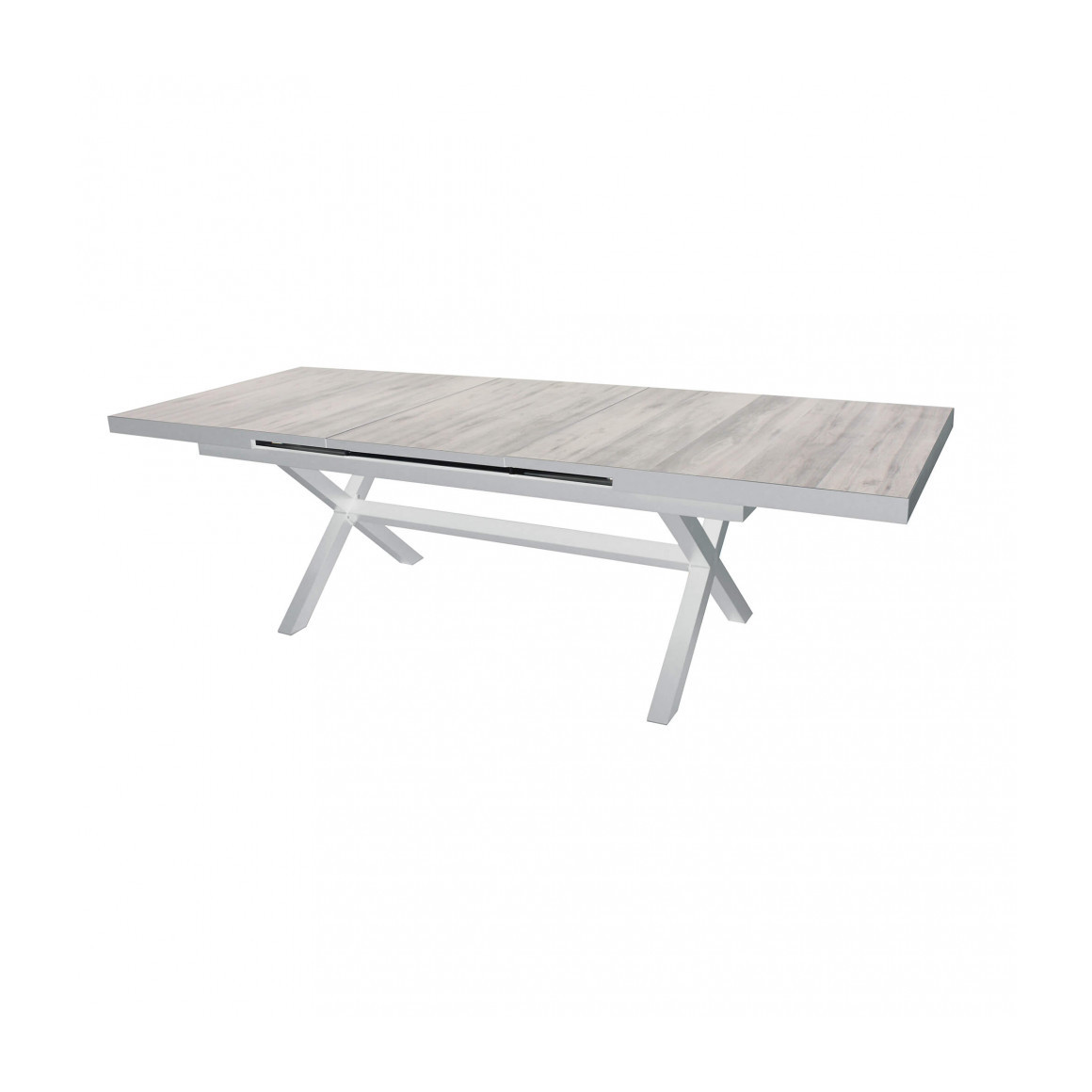 Tavolo allungabile DJERBA DELTONE in alluminio BIANCO e piano in gres effetto legno misura 200-260 largo 100