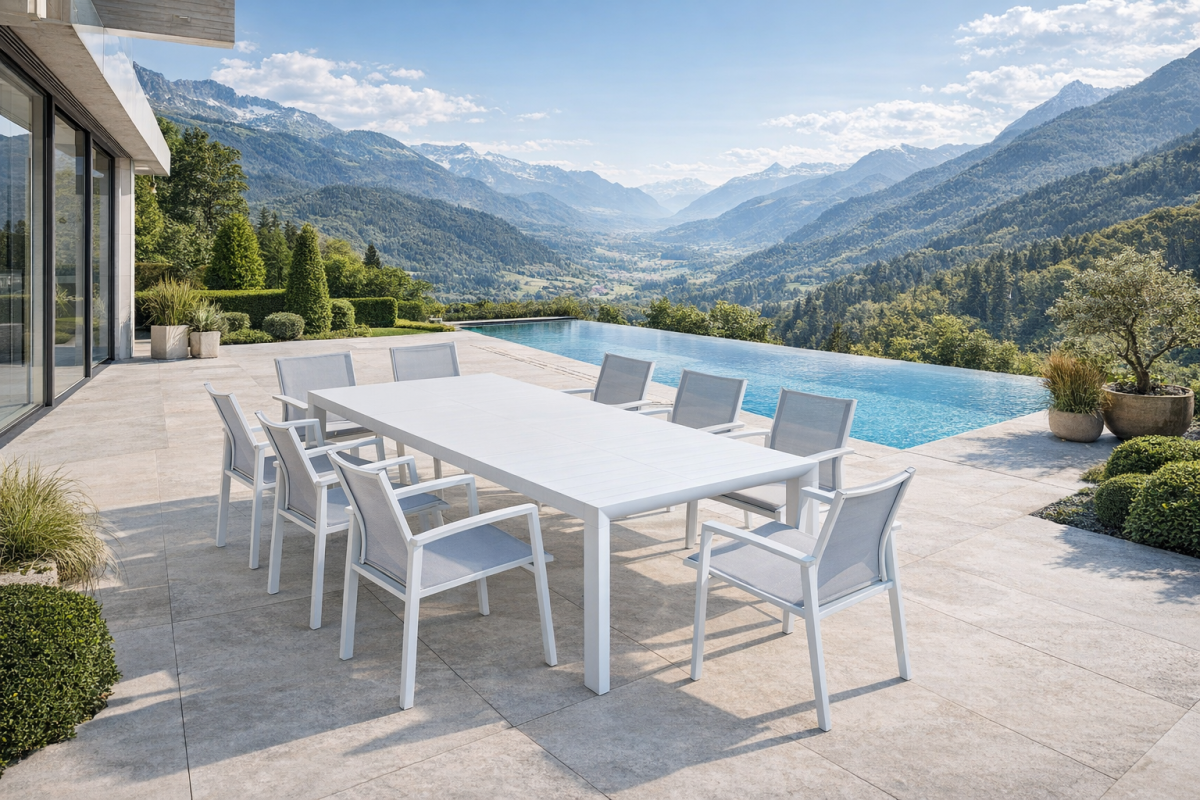 Il Tavolo Houston allungabile in alluminio rappresenta la soluzione ideale per chi desidera unire design moderno, funzionalità e resistenza in un unico complemento d’arredo per esterni. Pensato per giardini, terrazzi, verande e spazi outdoor di ogni dimensione, questo tavolo si distingue per la sua capacità di adattarsi con naturalezza a ogni occasione conviviale.