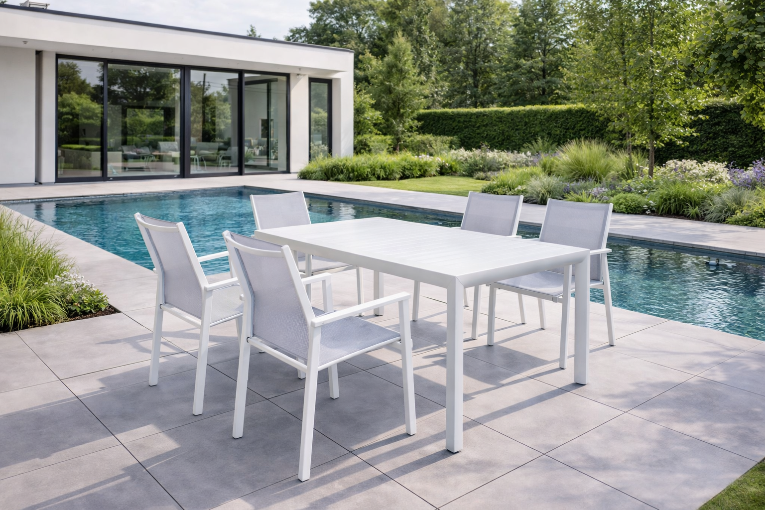 La struttura in alluminio di colore bianco rende questo tavolo per esterno molto apprezzato per solidità e design. Un complemento d'arredo che da solo è in grado di migliorare l'arredo dei tuoi spazi outdoor.