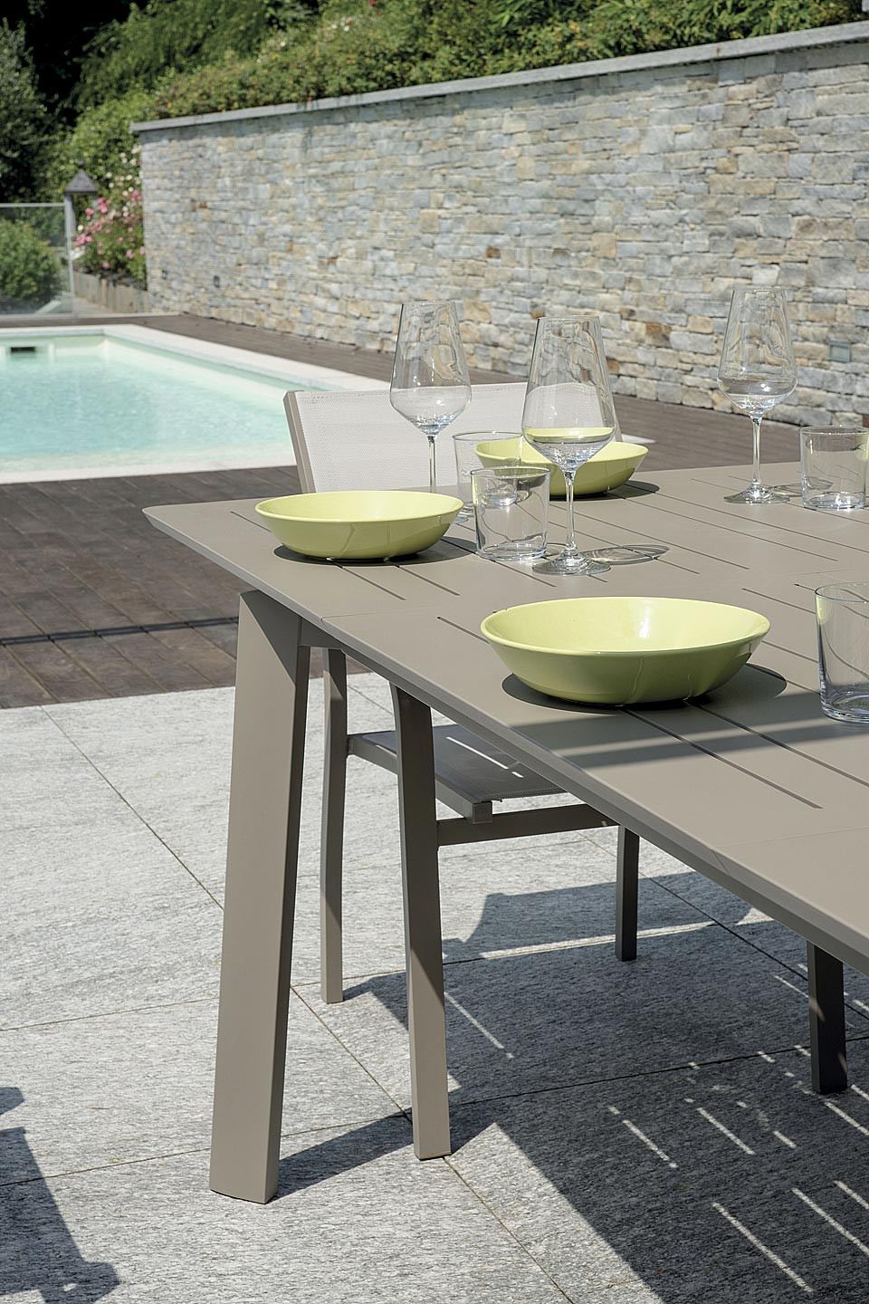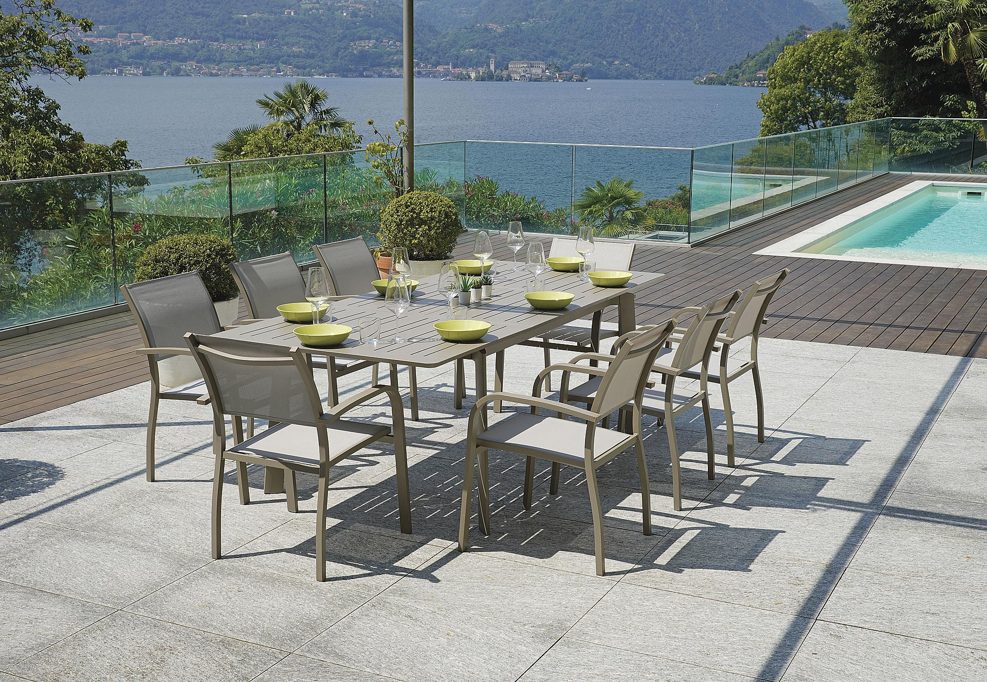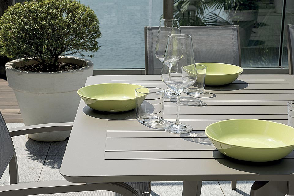 La finitura tortora, sobria ed elegante, si abbina facilmente a diverse tipologie di sedie e stili d’arredo outdoor, dal moderno al classico.