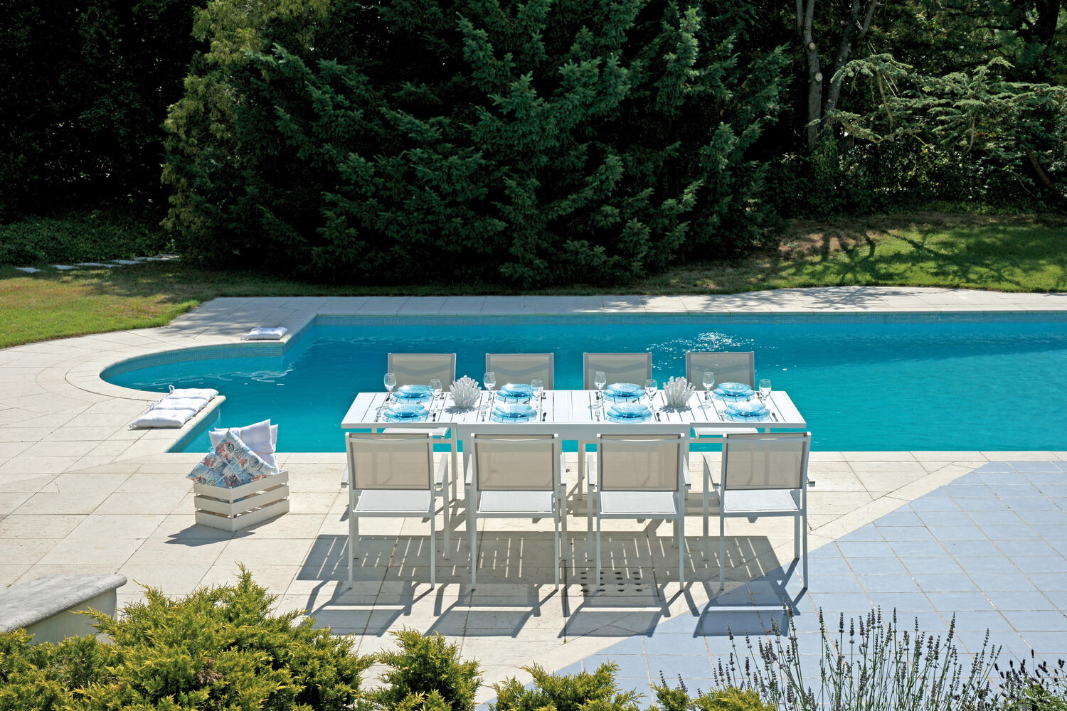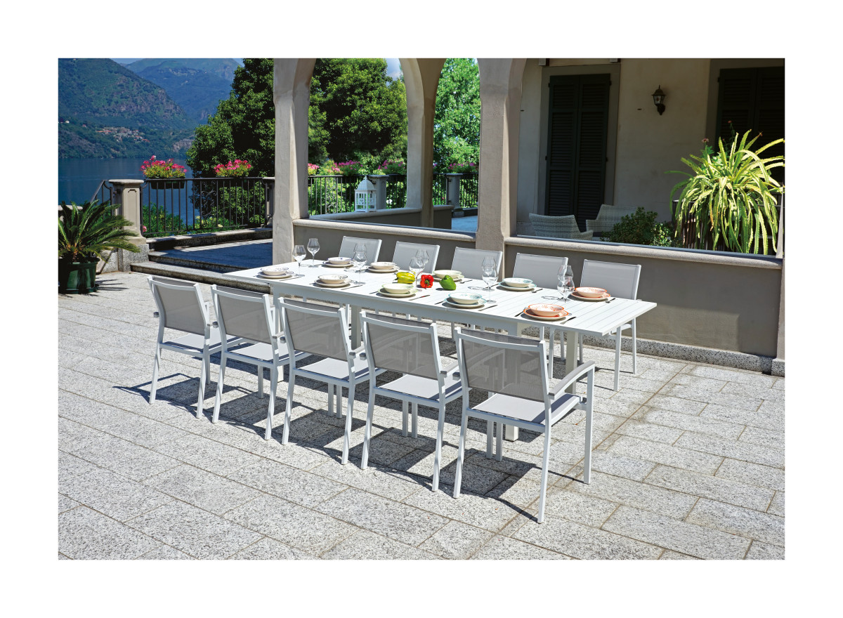 Caratterizzato da linee pulite ed essenziali, il tavolo MONTECATINI presenta una struttura in alluminio verniciato bianco che dona luminosità all’ambiente e si abbina facilmente a qualsiasi stile di arredo outdoor.