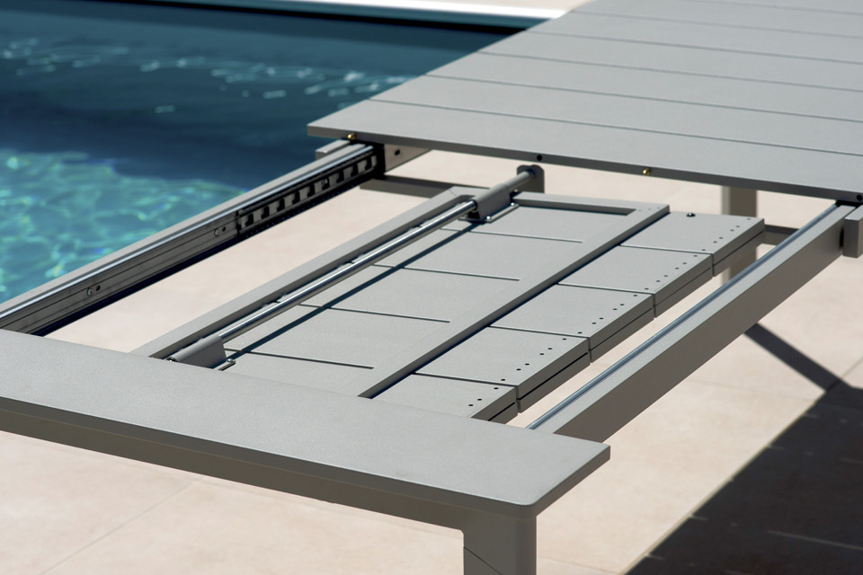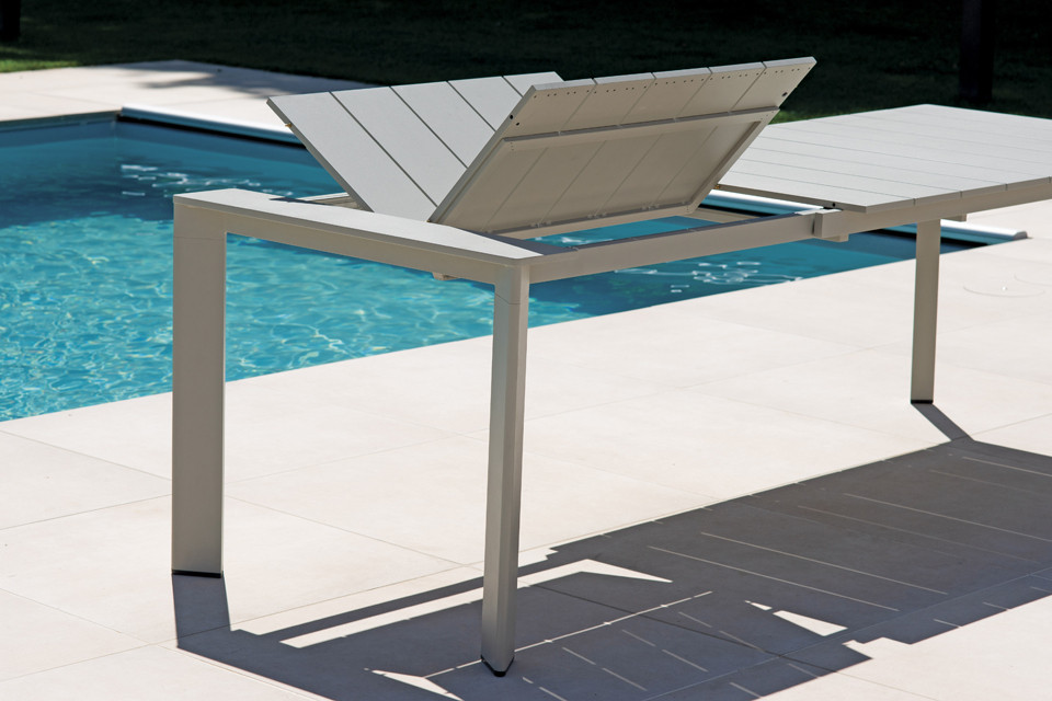 Tavolo ANZIO – alluminio creta – allungabile 165/250 x 90 cm – piano a doghe in alluminio – allungo con gambe scorrevoli