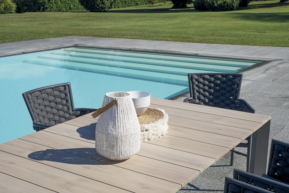 Progettato per accogliere comodamente numerosi ospiti, il tavolo Arenzano è perfetto per pranzi e cene all’aperto, occasioni conviviali ed eventi in giardino, terrazzo o veranda.