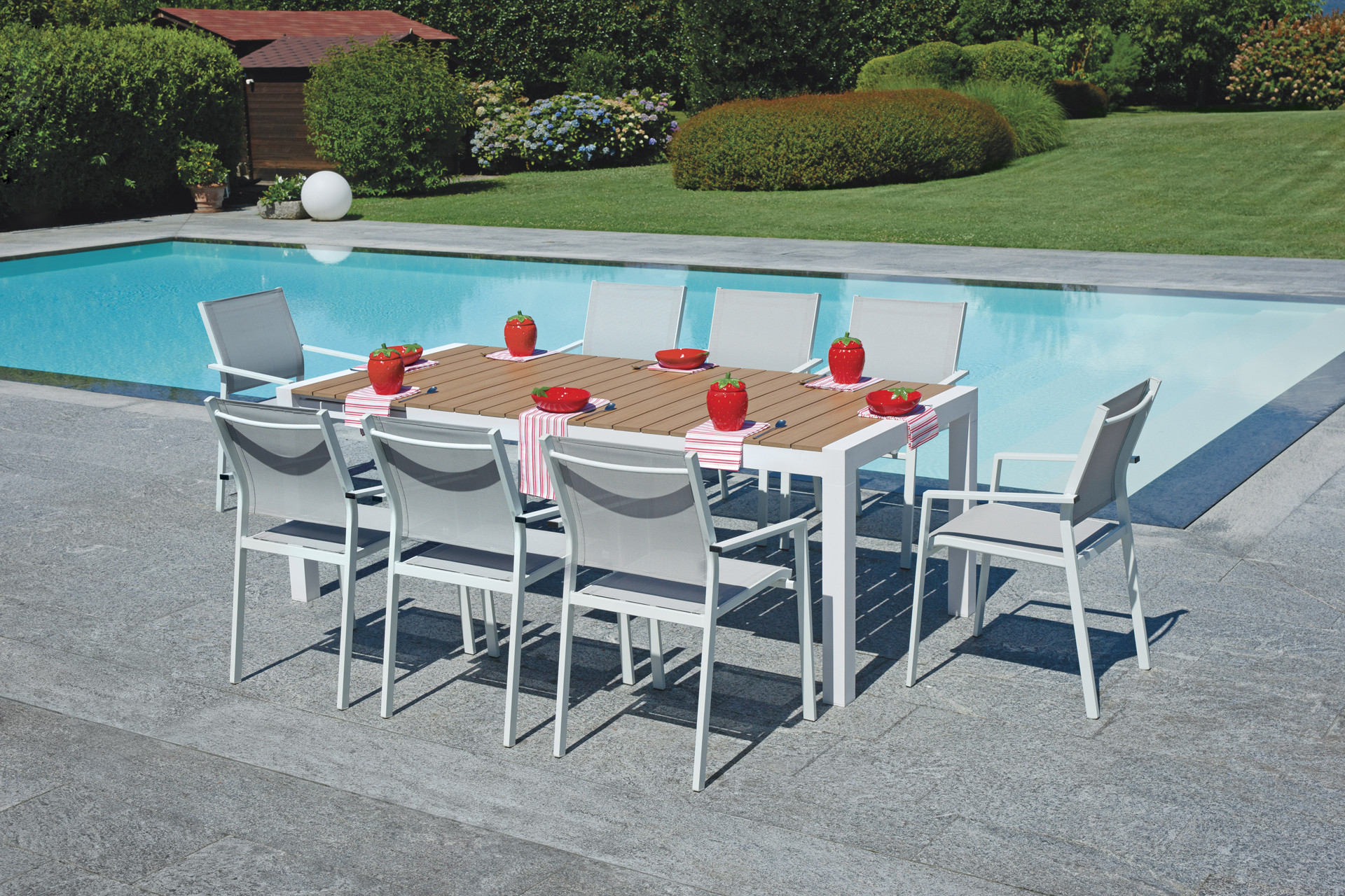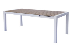 TAVOLO MAIORCA IN ALLUMINIO 160/210 × 95 CM – PIANO IN RESIN WOOD – BIANCO – ALLUNGABILE