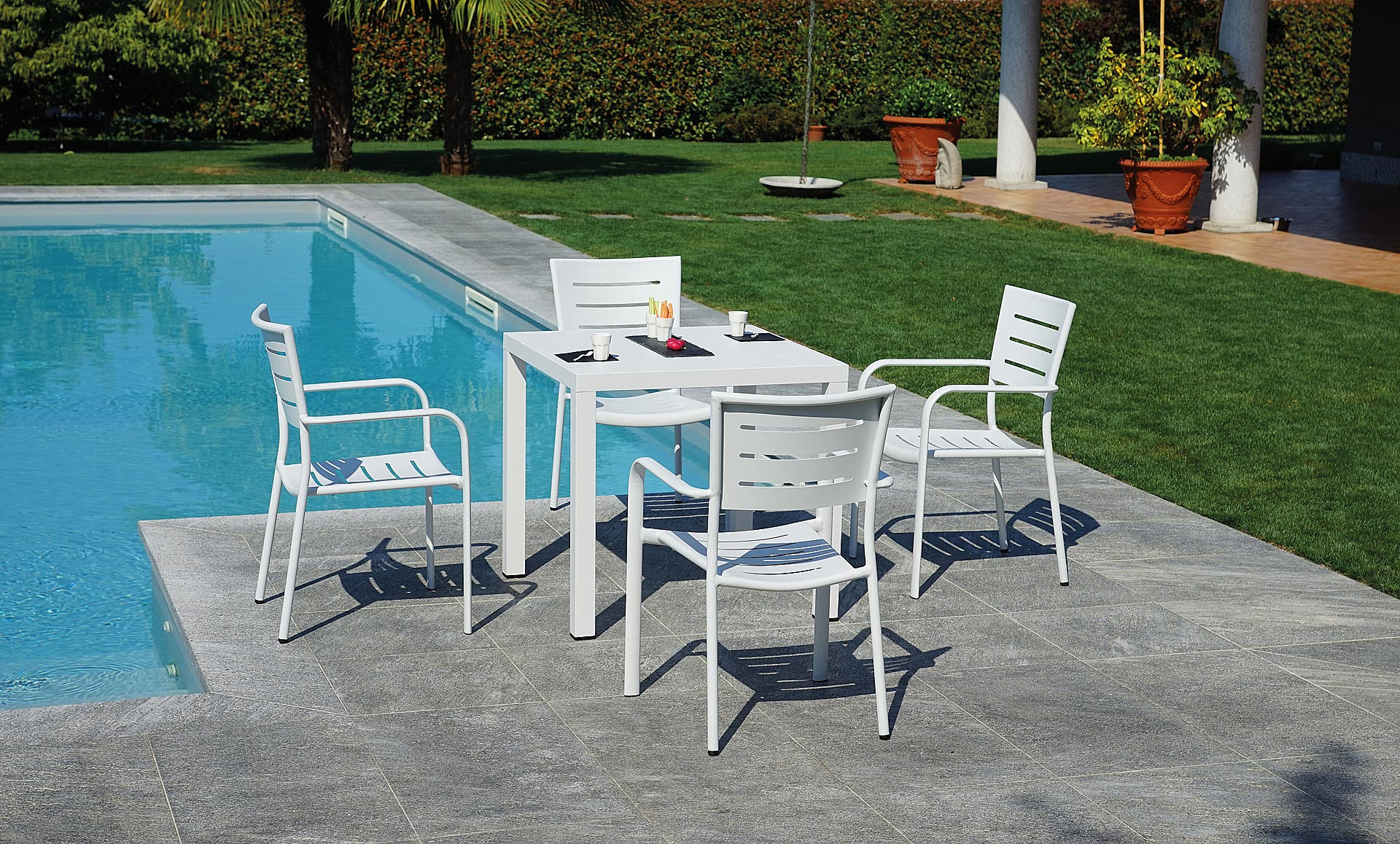 Il Tavolo San Vincenzo 80 × 80 cm in alluminio bianco è la scelta ideale per chi desidera un arredo outdoor che unisca eleganza, praticità e resistenza, valorizzando ogni spazio esterno con semplicità e stile.