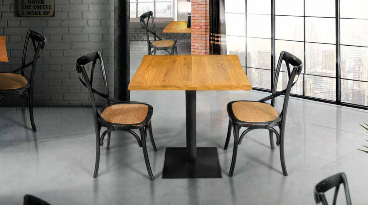 1600 TAVOLO MASSICCIO ROVERE 80 X 80 STRUTTURA NERA PIANO NATURALE