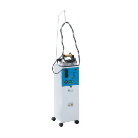 eneratore di vapore con ferro da stiro, valvola regolabile, doppia valvola di sicurezza, termostato di sicurezza in caso di avaria, livello visivo, scarico dell?acqua, segnalatore di mancanza acqua e manometro visivo della pressione (Caldaia da 4,5 l. ? 3,4 l. utili)•