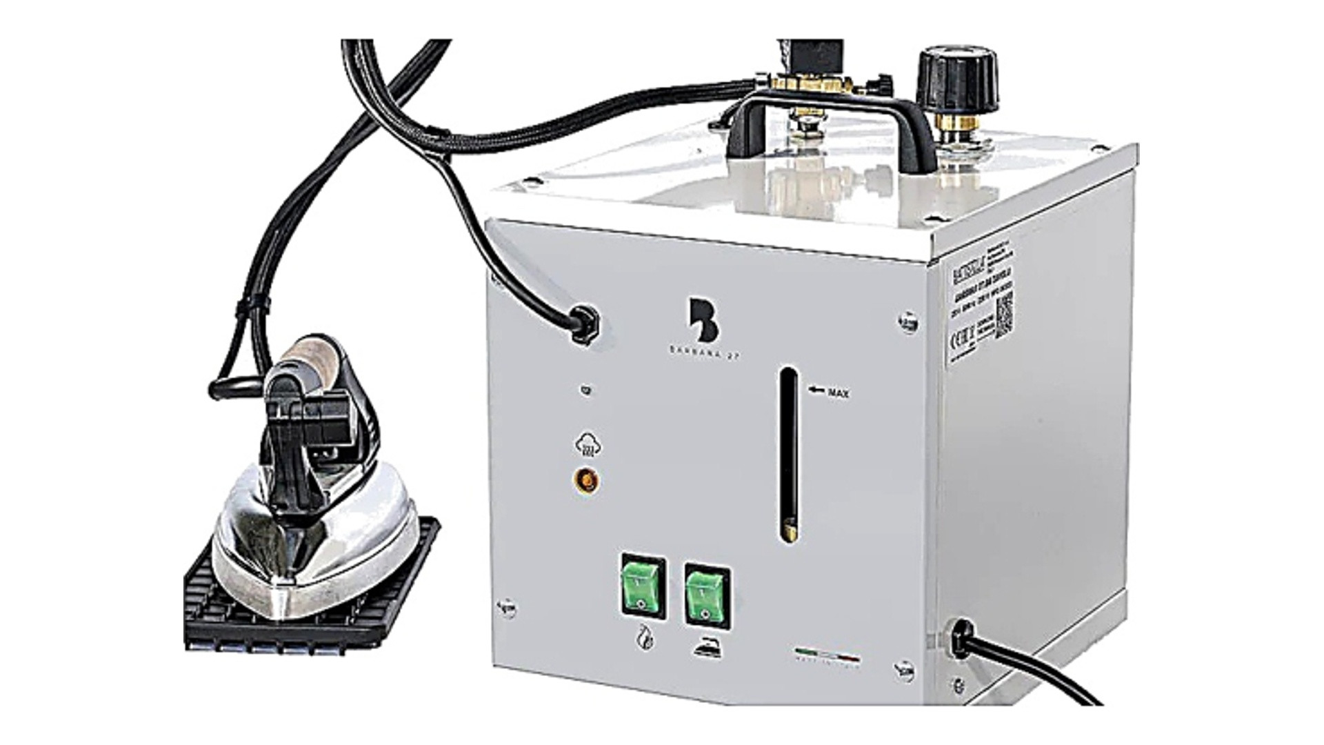 Dotato di caldaia in acciaio inox da 4,5 L (3,4 L utili) e ferro da stiro professionale incluso, è la soluzione ideale per chi necessita di prestazioni elevate in spazi ridotti, senza rinunciare alla qualità.