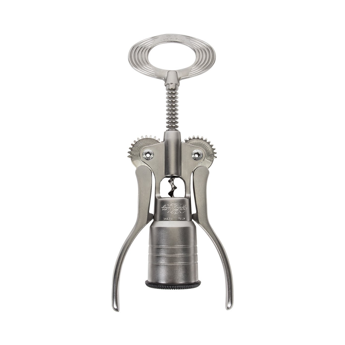 Una campana telescopica autocentrante posiziona il vermiglione esattamente nella parte centrale del tappo: una volta avvitato il vermiglione, le due leve fanno uscire il tappo con facilità e delicatezza. Si evita così di dare scossoni alla bottiglia e di sollevare i sedimenti tipici dei vini invecchiati. Inoltre, il cavatappi è concepito in modo da non forare mai la parte inferiore del tappo, evitando la caduta di pezzi di sughero nel vino.