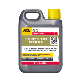 FILA NATUREOIL è un olio protettivo naturale 3 in 1 che nutre in profondità, protegge da usura e agenti atmosferici e ravviva la colorazione originale delle superfici. Ideale per applicazioni interne ed esterne, valorizza il materiale conferendogli un aspetto più intenso, uniforme e naturale.