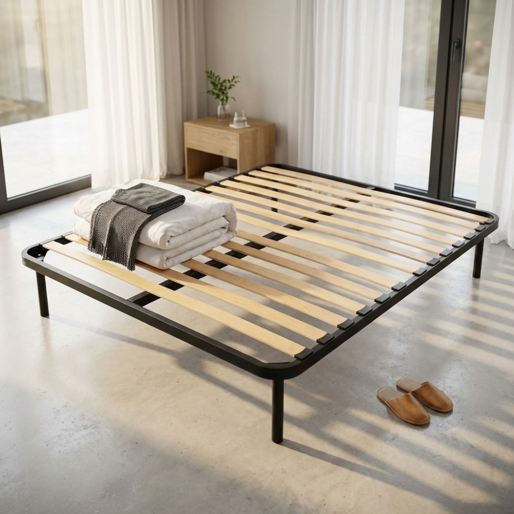 Rete a 13 doghe in faggio e tubolare in acciaio Verniciato a polveri epossodiche Produzione italiana Dimensioni: cm 160 x 190 x 30 h