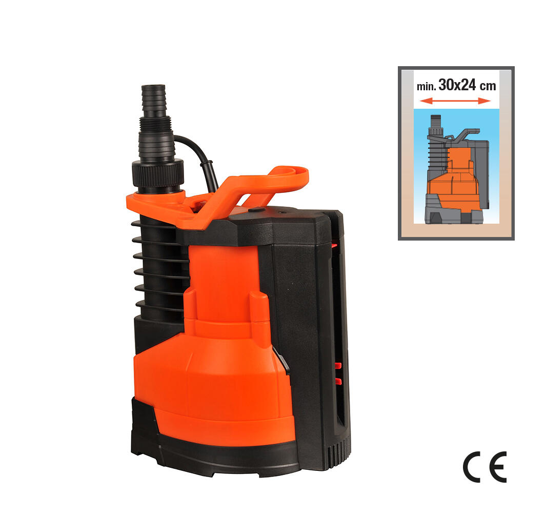 Utilizzo per acque pulite con galleggiante integrato - Dimensione pompa 16,1x23,6x29,8 cm., quindi la dimensione minima del pozzetto potrà essere 16,5x24 cm. - Altezza max 8,5 mt. - Profondità max 7 mt. - Dimensioni particelle max. 5 mm. - Diametro uscita: ? 1"-1 1/4"-1 1/2" - Con valvola di non ritorno - Cavo da 10 mt. 13.000 lt/h