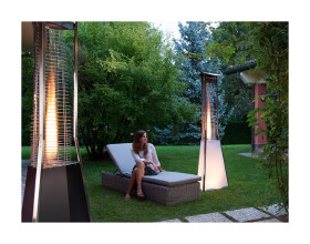In particolare, la Piramide riscaldante con fiamma a vista KALIENTE, unisce l'estrema funzionalità ad un design innovativo, sostituendo la struttura a fungo tipica di questi apparati, ad una più affascinante, moderna e personalizzabile.