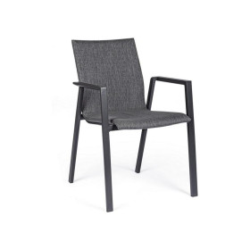 La Sedia con braccioli Odeon antracite di Bizzotto è una sedia con braccioli da giardino con struttura in alluminio verniciata a polvere (poliestere). Rivestimento con tessuto misto (70% textilene, 30% olefin). Imbottitura per esterno fast dry foam. Impilabile.