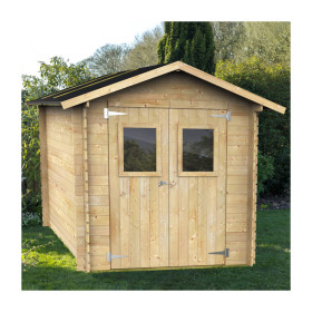 Doppia porta battente con chiavistello, robuste pareti rinforzate da un?armatura in legno di abete, tetto in perlinato con spessore maggiorato di 16 mm, copertura bituminosa ardesiata e pareti da 19 mm di spessore: sono solo alcune delle caratteristiche che hanno permesso alla Roby di essere una delle casette da giardino in legno tra le più richieste.