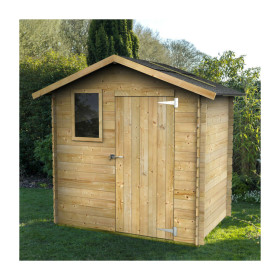 La casetta da giardino Livia è interamente realizzata utilizzando pannelli in legno di pregiato abete rosso nordico. Inoltre, per il tetto e il pavimento sono stati impiegati pannelli OSB, dello spessore di 12mm, estremamente versatili e resistenti e a basso impatto ambientale. A conferire maggiore stabilità alla struttura, contribuiscono il sottopavimento, i cui listelli sono stati impregnati in autoclave, per proteggere il legno dall?azione degli agenti atmosferici e l?armatura di rinforzo delle pareti, anch?essa realizzata utilizzando il legno di abete. Quest?ultimo è consegnato grezzo e non trattato, dunque è altamente consigliato verniciarlo dopo il montaggio con un trattamento impregnante protettivo, neutro o del colore che preferite. Il tetto invece, è dotato di una guaina bituminosa ardesiata dello spessore di 3mm, che ne garantisce l?impermeabilità. Potrete dunque conservare i vostri attrezzi tranquillamente all?asciutto nella casetta, a cui si accede attraverso la porta a singolo battente, (71x160cm), che si chiude per mezzo di un chiavistello. La casetta da giardino Livia è dotata infine di una finestra fissa in plexiglas, che oltre a costituire un elemento di decoro, ne garantisce l?illuminazione all?interno.