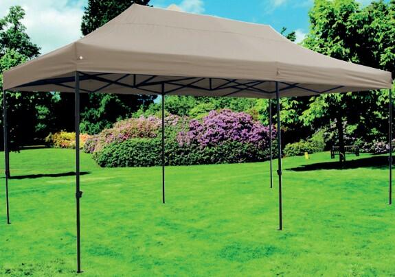 • Struttura acciaio verniciato colore grigio antracite, con copertura in tessuto poliestere e PVC impermeabile 250g/m2 colore beige. Sezione struttura 30?30/25?25/12?23 mm, completo di sacca morbida per trasporto con rotelle.