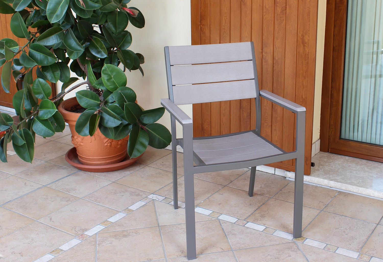 poltrona da giardino in alluminio semiopaco colore TAUPE con braccioli seduta e schienale in polywood colore grigio